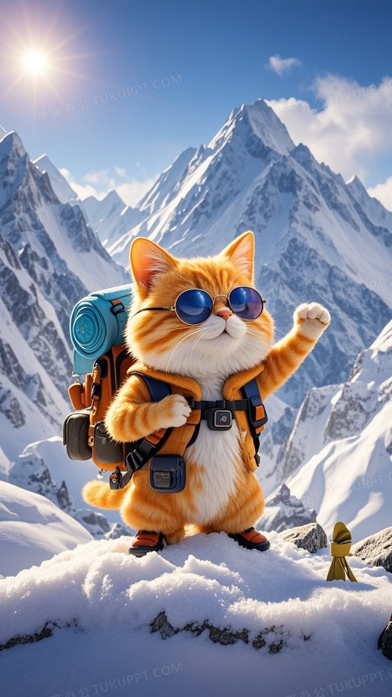本作品内容为一只橘猫带着墨镜带着旅行包可爱版真实清晰在一座雪山上拍照, 格式为 jpg, 大小1 MB, 图片尺寸为1152 x 2048, 源文件无水印, 欢迎使用熊猫办公。 如认为平台内容涉嫌侵权,可通过邮件:tousu@tukuppt.com提出书面通知,我们将及时处理。
