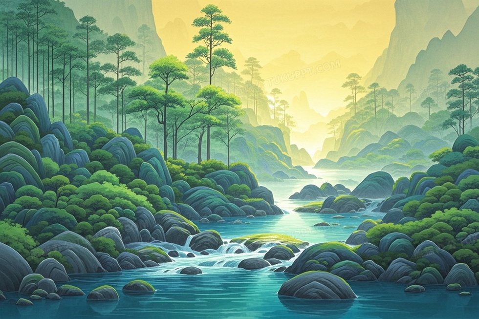 本作品内容为小青绿山水绿蓝黄水彩中国风山水, 格式为 jpg, 大小1 MB, 图片尺寸为2048 x 1364, 源文件无水印, 欢迎使用熊猫办公。 如认为平台内容涉嫌侵权,可通过邮件:tousu@tukuppt.com提出书面通知,我们将及时处理。