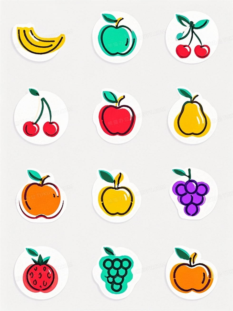 本作品内容为图标丰富色彩的水果细线条, 格式为 jpg, 大小1 MB, 图片尺寸为1536 x 2048, 源文件无水印, 欢迎使用熊猫办公。 如认为平台内容涉嫌侵权,可通过邮件:tousu@tukuppt.com提出书面通知,我们将及时处理。