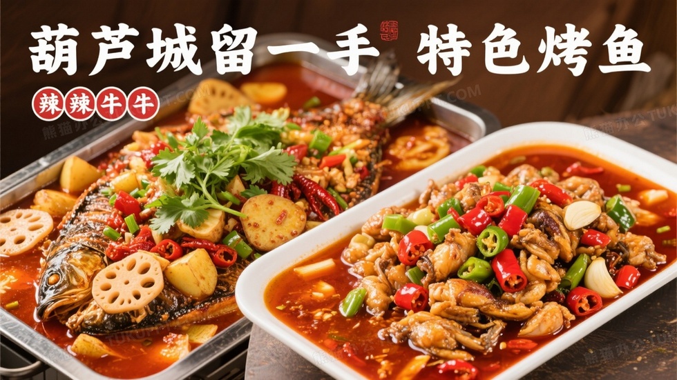 本作品内容为两盘覆盖着莲藕土豆等蔬菜且顶部点缀香菜的烤鱼, 格式为 jpg, 大小1 MB, 图片尺寸为1664 x 936, 源文件无水印, 欢迎使用熊猫办公。 如认为平台内容涉嫌侵权,可通过邮件:tousu@tukuppt.com提出书面通知,我们将及时处理。
