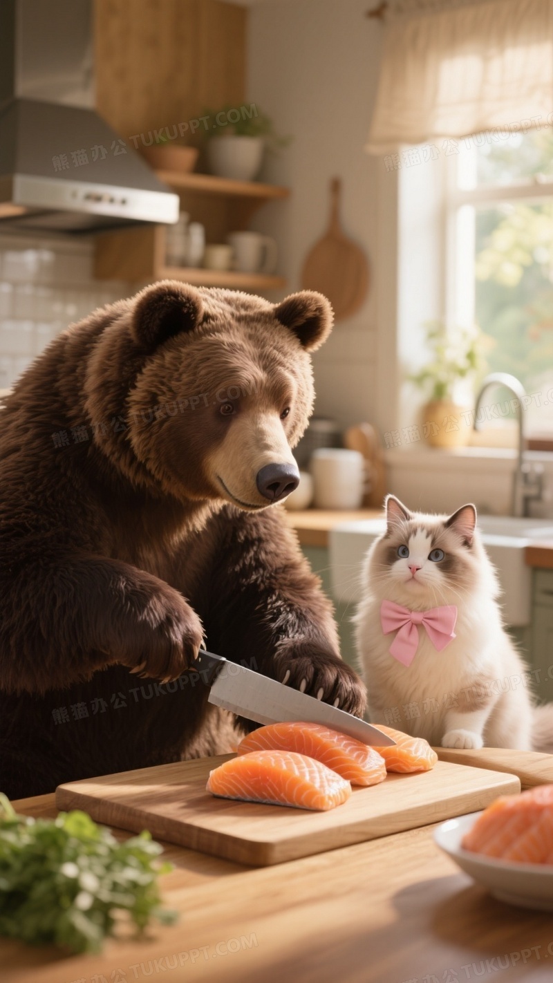 本作品内容为一只拟人化的可爱熊专注地切着三文鱼, 格式为 jpg, 大小1 MB, 图片尺寸为936 x 1664, 源文件无水印, 欢迎使用熊猫办公。 如认为平台内容涉嫌侵权,可通过邮件:tousu@tukuppt.com提出书面通知,我们将及时处理。