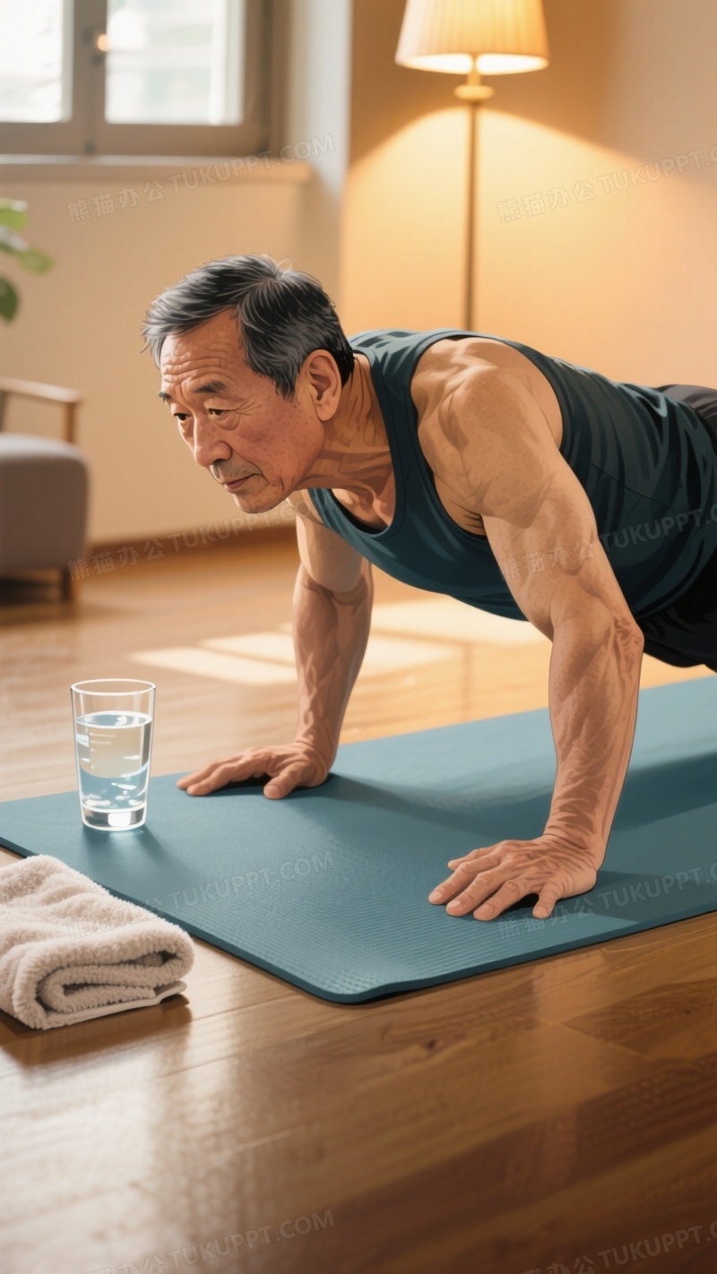 本作品内容为写实风格公益插画一名中年男子在瑜伽垫上做着俯卧撑, 格式为 jpg, 大小1 MB, 图片尺寸为936 x 1664, 源文件无水印, 欢迎使用熊猫办公。 如认为平台内容涉嫌侵权,可通过邮件:tousu@tukuppt.com提出书面通知,我们将及时处理。
