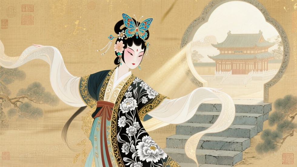 本作品内容为花旦水袖舞动中景插画, 格式为 jpg, 大小1 MB, 图片尺寸为1664 x 936, 源文件无水印, 欢迎使用熊猫办公。 如认为平台内容涉嫌侵权,可通过邮件:tousu@tukuppt.com提出书面通知,我们将及时处理。
