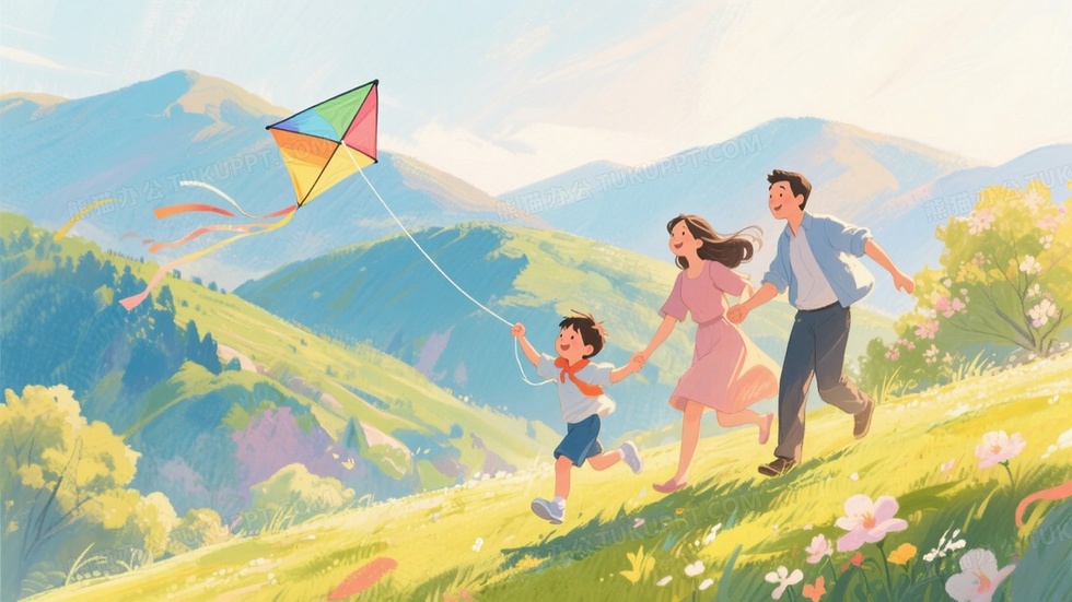 本作品内容为一家人春游插画在山坡上放风筝, 格式为 jpg, 大小1 MB, 图片尺寸为1664 x 936, 源文件无水印, 欢迎使用熊猫办公。 如认为平台内容涉嫌侵权,可通过邮件:tousu@tukuppt.com提出书面通知,我们将及时处理。