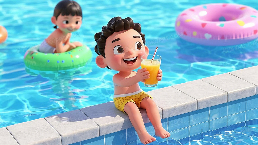 本作品内容为C4D风夏日儿童泳池喝果汁场景插画, 格式为 jpg, 大小3 MB, 图片尺寸为2720 x 1530, 源文件无水印, 欢迎使用熊猫办公。 如认为平台内容涉嫌侵权,可通过邮件:tousu@tukuppt.com提出书面通知,我们将及时处理。
