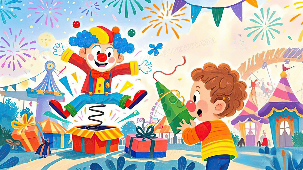 本作品内容为小丑从装有弹簧的礼盒蹦出来吓小朋友愚人节插画, 格式为 jpg, 大小8 MB, 图片尺寸为3072 x 1728, 源文件无水印, 欢迎使用熊猫办公。 如认为平台内容涉嫌侵权,可通过邮件:tousu@tukuppt.com提出书面通知,我们将及时处理。