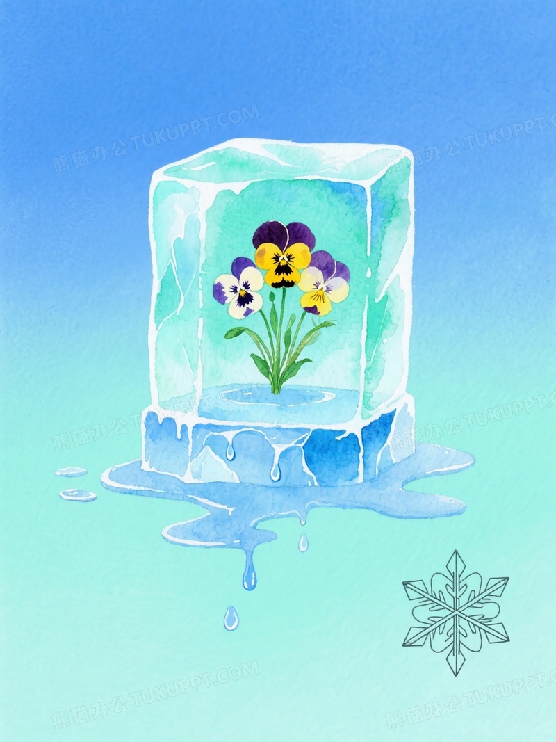 本作品内容为冰川主题极简插画半透明蓝绿冰层包裹冻住的三色堇, 格式为 jpg, 大小1 MB, 图片尺寸为1104 x 1472, 源文件无水印, 欢迎使用熊猫办公。 如认为平台内容涉嫌侵权,可通过邮件:tousu@tukuppt.com提出书面通知,我们将及时处理。