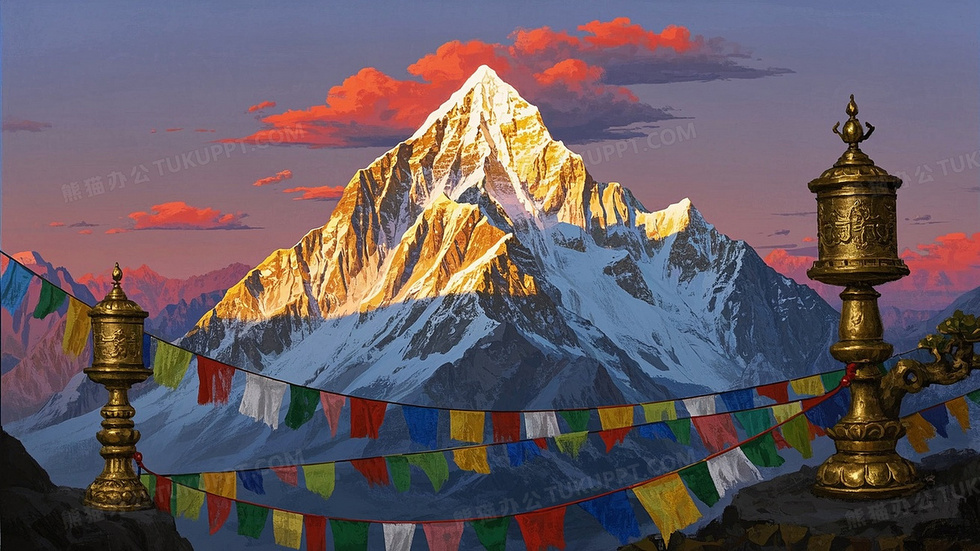 本作品内容为珠峰峰顶覆盖唐卡风格金箔祥云, 格式为 jpg, 大小2 MB, 图片尺寸为4096 x 2304, 源文件无水印, 欢迎使用熊猫办公。 如认为平台内容涉嫌侵权,可通过邮件:tousu@tukuppt.com提出书面通知,我们将及时处理。