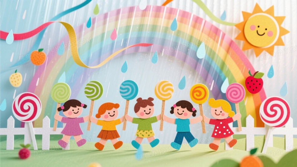 本作品内容为剪纸叠层风格童趣画面, 格式为 jpg, 大小1 MB, 图片尺寸为1664 x 936, 源文件无水印, 欢迎使用熊猫办公。 如认为平台内容涉嫌侵权,可通过邮件:tousu@tukuppt.com提出书面通知,我们将及时处理。