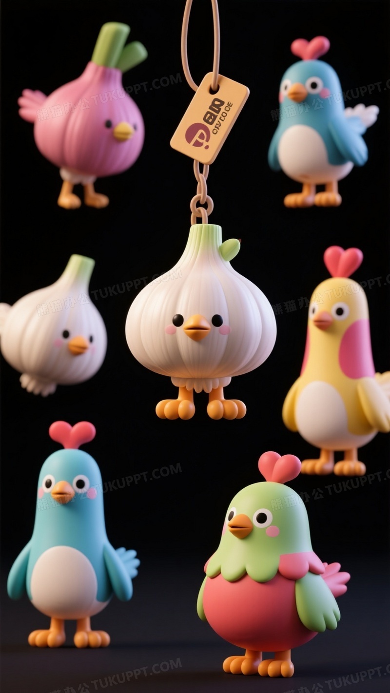 本作品内容为吊卡公仔设计可爱的各种蒜鸟造型, 格式为 jpg, 大小1 MB, 图片尺寸为936 x 1664, 源文件无水印, 欢迎使用熊猫办公。 如认为平台内容涉嫌侵权,可通过邮件:tousu@tukuppt.com提出书面通知,我们将及时处理。