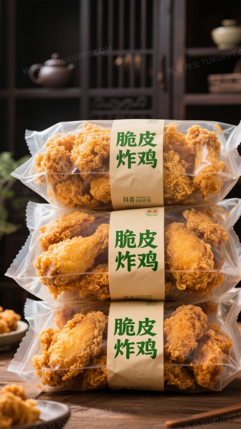 本作品内容为特写四袋长方形透明包装袋堆叠整齐的脆皮炸鸡, 格式为 jpg, 大小1 MB, 图片尺寸为936 x 1664, 源文件无水印, 欢迎使用熊猫办公。 如认为平台内容涉嫌侵权,可通过邮件:tousu@tukuppt.com提出书面通知,我们将及时处理。