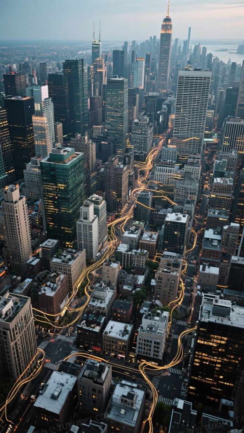 本作品内容为繁华城市俯瞰图各个大楼和街区用宽带连接在一起, 格式为 jpg, 大小1 MB, 图片尺寸为936 x 1664, 源文件无水印, 欢迎使用熊猫办公。 如认为平台内容涉嫌侵权,可通过邮件:tousu@tukuppt.com提出书面通知,我们将及时处理。