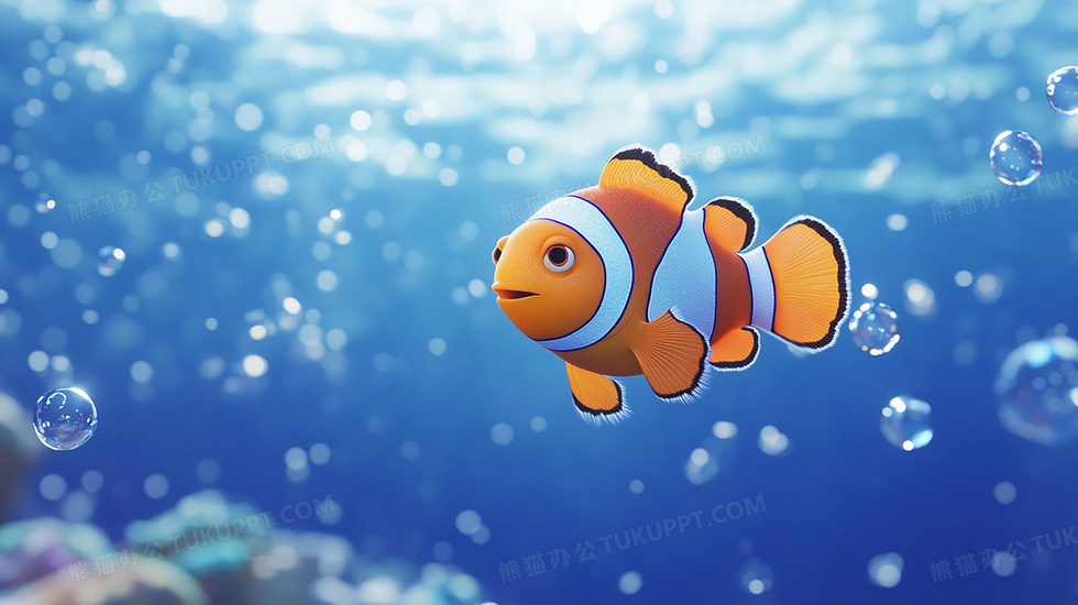 本作品内容为简约q版小丑鱼背景, 格式为 jpg, 大小1 MB, 图片尺寸为2912 x 1632, 作品中背景图片无需修改, 源文件无水印,可以直接使用, 欢迎使用熊猫办公。 如认为平台内容涉嫌侵权,可通过邮件:tousu@tukuppt.com提出书面通知,我们将及时处理。