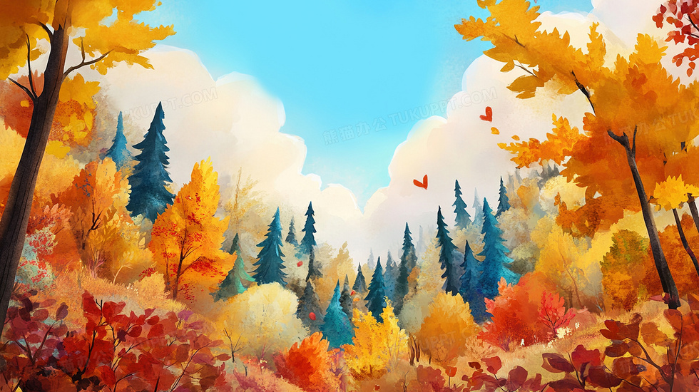 本作品内容为水彩风格秋天森林场景插画, 格式为 jpg, 大小4 MB, 图片尺寸为2912 x 1632, 源文件无水印, 欢迎使用熊猫办公。 如认为平台内容涉嫌侵权,可通过邮件:tousu@tukuppt.com提出书面通知,我们将及时处理。