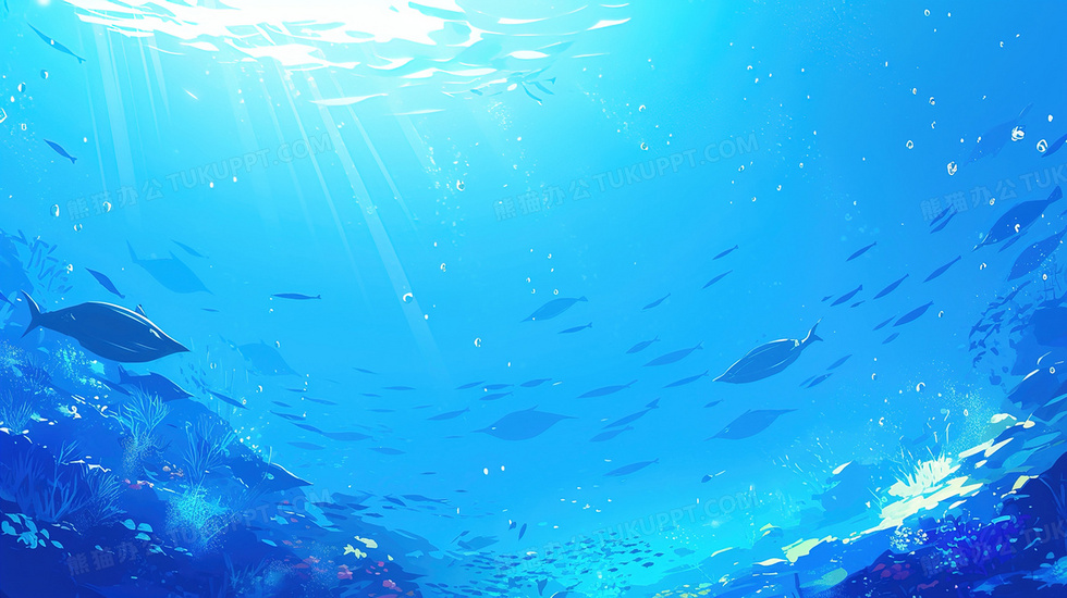 本作品内容为海底世界鱼群海洋生物背景, 格式为 jpg, 大小3 MB, 图片尺寸为2912 x 1632, 作品中背景图片无需修改, 源文件无水印,可以直接使用, 欢迎使用熊猫办公。 如认为平台内容涉嫌侵权,可通过邮件:tousu@tukuppt.com提出书面通知,我们将及时处理。