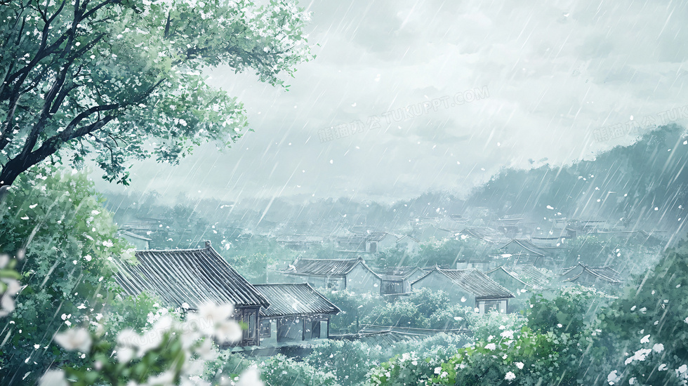 本作品内容为下雨天中国风乡村小镇风景插画, 格式为 jpg, 大小7 MB, 图片尺寸为2912 x 1632, 源文件无水印, 欢迎使用熊猫办公。 如认为平台内容涉嫌侵权,可通过邮件:tousu@tukuppt.com提出书面通知,我们将及时处理。