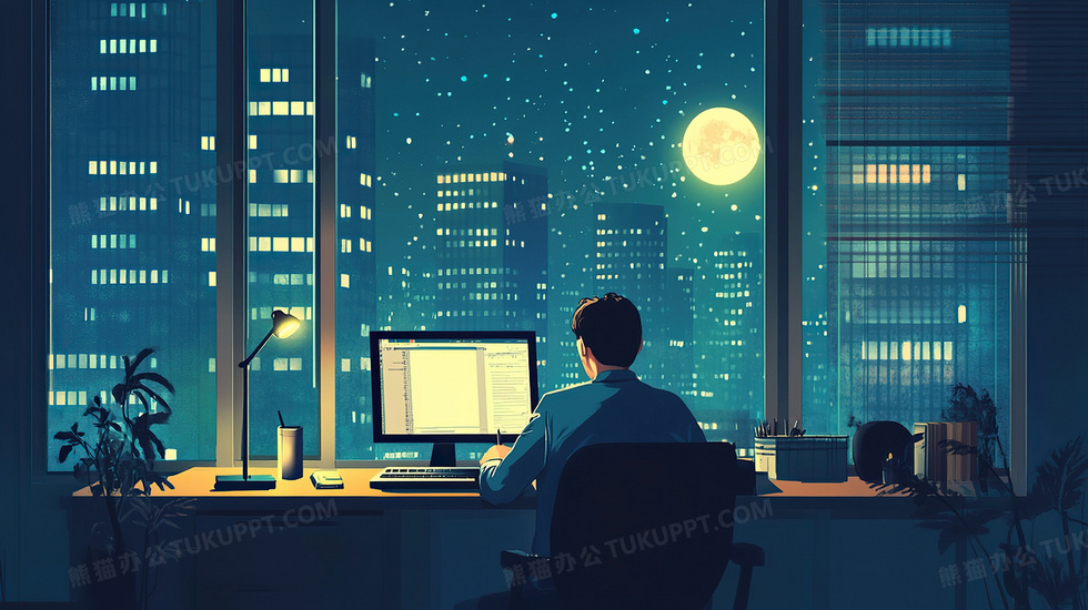 本作品内容为扁平风深夜加班的打工人插画, 格式为 jpg, 大小3 MB, 图片尺寸为2912 x 1632, 源文件无水印, 欢迎使用熊猫办公。 如认为平台内容涉嫌侵权,可通过邮件:tousu@tukuppt.com提出书面通知,我们将及时处理。