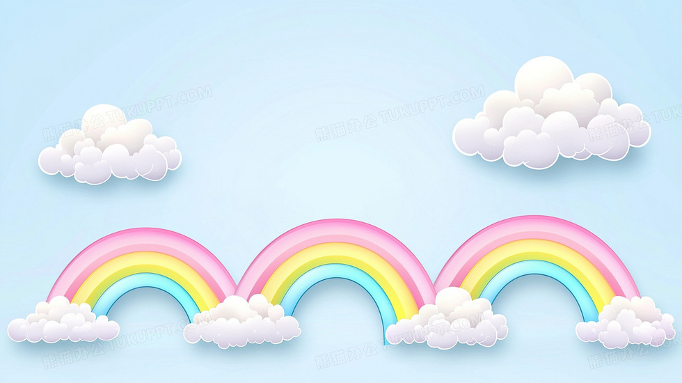 本作品内容为白色云朵弧形彩虹背景, 格式为 jpg, 大小2 MB, 图片尺寸为2912 x 1632, 作品中背景图片无需修改, 源文件无水印,可以直接使用, 欢迎使用熊猫办公。 如认为平台内容涉嫌侵权,可通过邮件:tousu@tukuppt.com提出书面通知,我们将及时处理。
