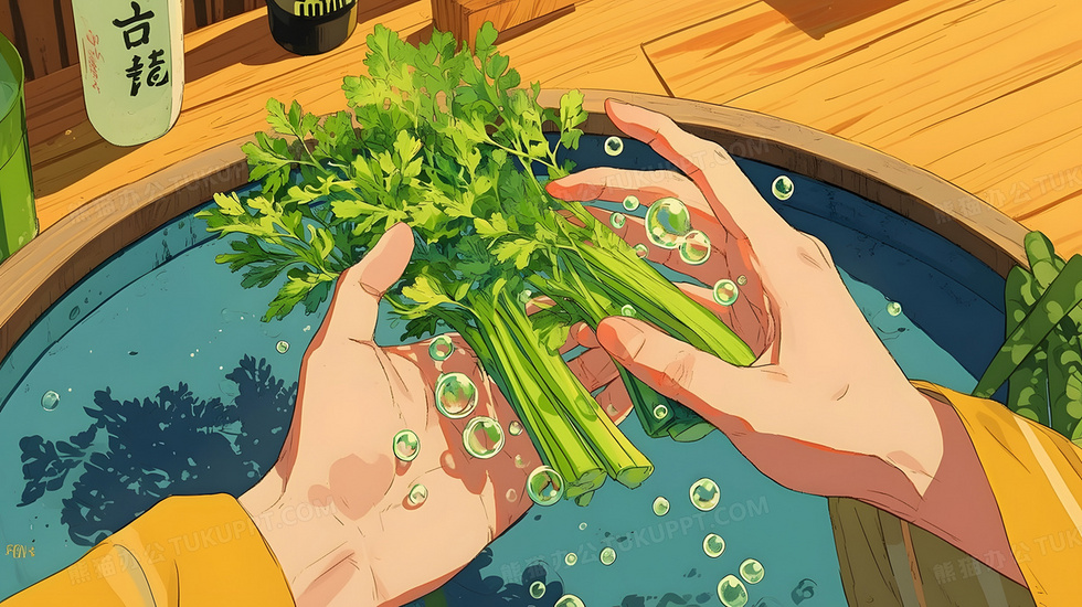 本作品内容为卡通动漫洗新鲜香菜插画, 格式为 jpg, 大小3 MB, 图片尺寸为2912 x 1632, 源文件无水印, 欢迎使用熊猫办公。 如认为平台内容涉嫌侵权,可通过邮件:tousu@tukuppt.com提出书面通知,我们将及时处理。