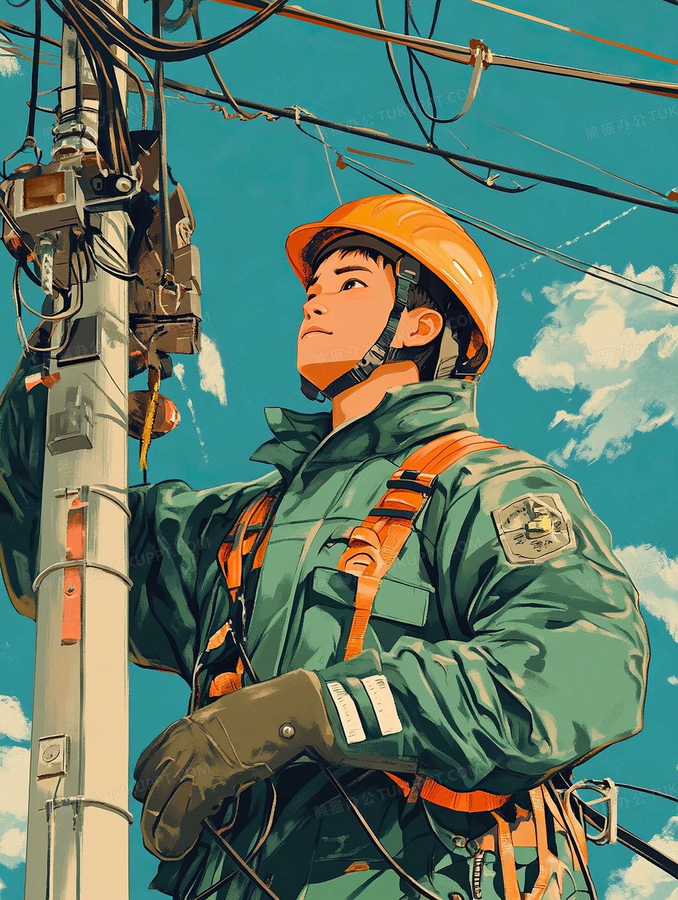 本作品内容为一个男电力工人插画, 格式为 jpg, 大小4 MB, 图片尺寸为1856 x 2464, 源文件无水印, 欢迎使用熊猫办公。 如认为平台内容涉嫌侵权,可通过邮件:tousu@tukuppt.com提出书面通知,我们将及时处理。