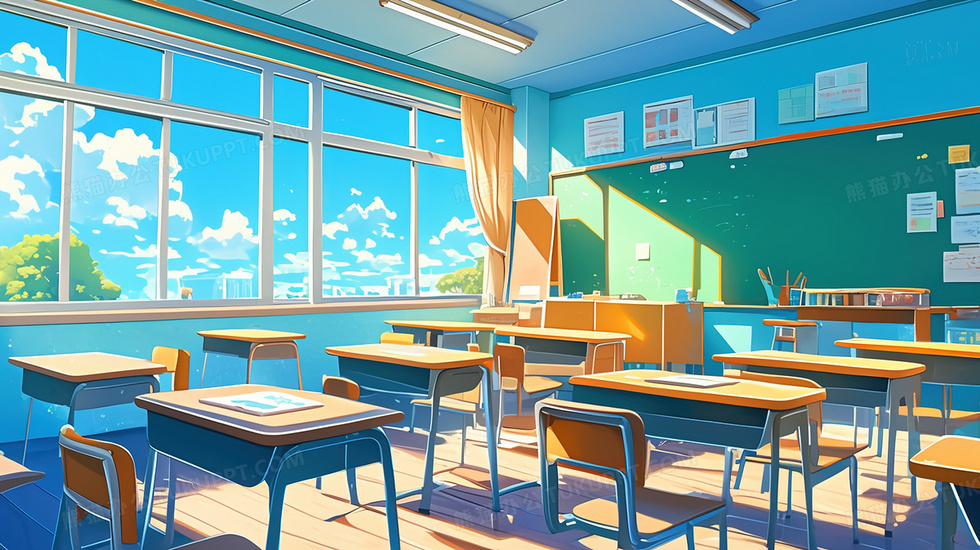 本作品内容为开学季教室光影场景插画, 格式为 jpg, 大小3 MB, 图片尺寸为2912 x 1632, 源文件无水印, 欢迎使用熊猫办公。 如认为平台内容涉嫌侵权,可通过邮件:tousu@tukuppt.com提出书面通知,我们将及时处理。