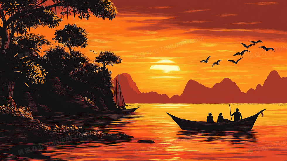 本作品内容为剪影风户外海面上行驶的船插画, 格式为 jpg, 大小4 MB, 图片尺寸为2912 x 1632, 源文件无水印, 欢迎使用熊猫办公。 如认为平台内容涉嫌侵权,可通过邮件:tousu@tukuppt.com提出书面通知,我们将及时处理。