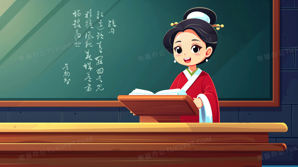 本作品内容为国学女老师在讲台上朗读古诗插画, 格式为 jpg, 大小5 MB, 图片尺寸为2912 x 1632, 源文件无水印, 欢迎使用熊猫办公。 如认为平台内容涉嫌侵权,可通过邮件:tousu@tukuppt.com提出书面通知,我们将及时处理。