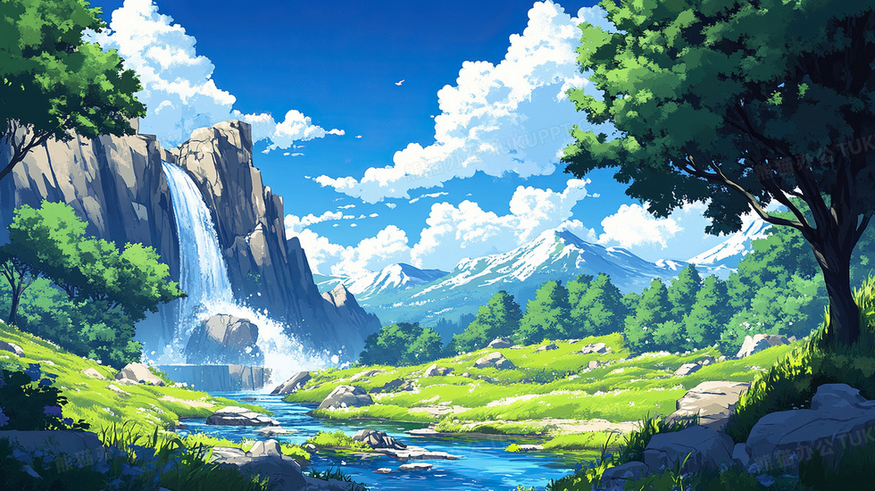 本作品内容为世界水日瀑布淡水水资源风景插画, 格式为 jpg, 大小4 MB, 图片尺寸为2912 x 1632, 源文件无水印, 欢迎使用熊猫办公。 如认为平台内容涉嫌侵权,可通过邮件:tousu@tukuppt.com提出书面通知,我们将及时处理。