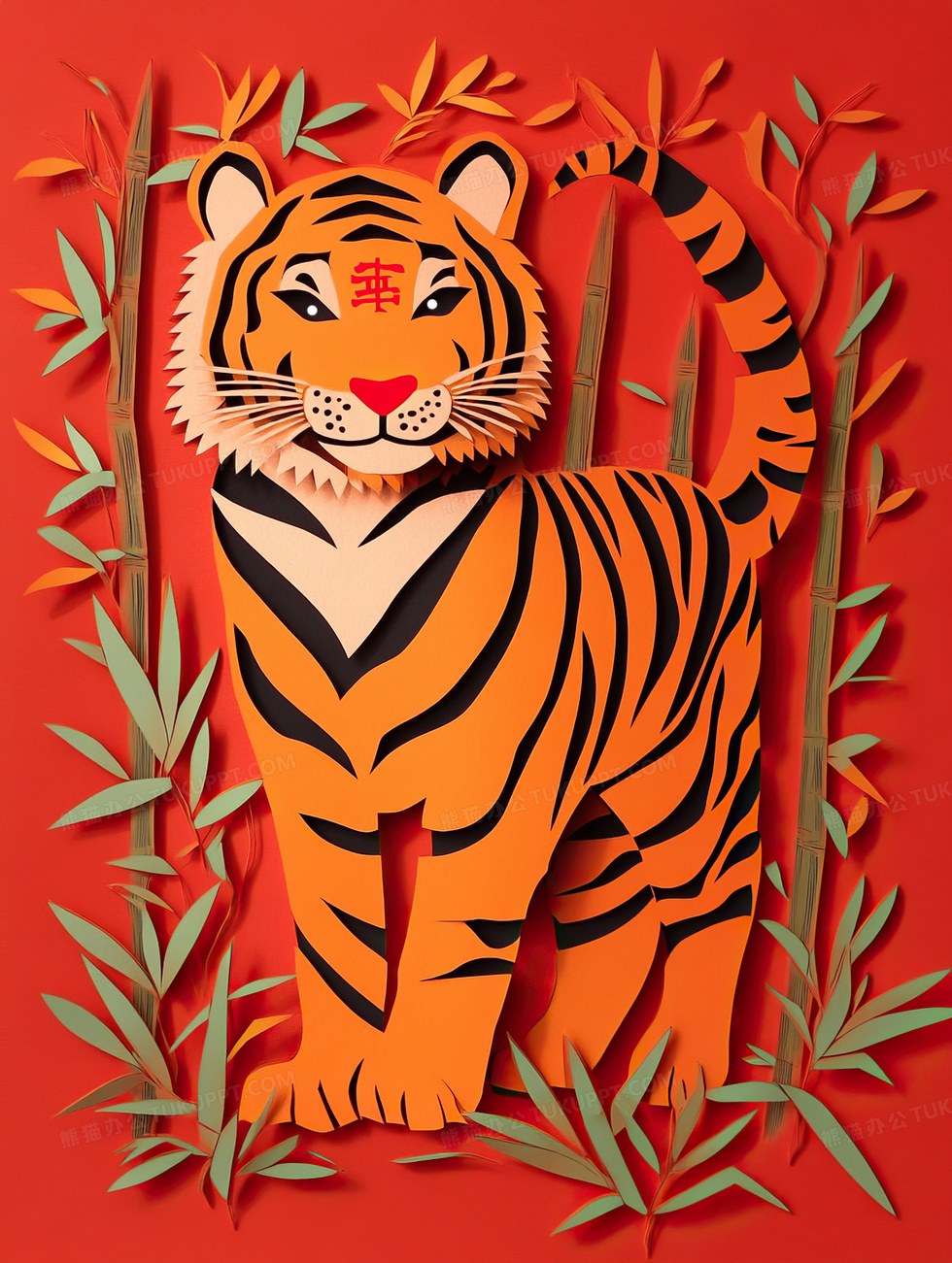 本作品内容为红色剪纸风生肖虎新年插画, 格式为 jpg, 大小5 MB, 图片尺寸为1856 x 2464, 源文件无水印, 欢迎使用熊猫办公。 如认为平台内容涉嫌侵权,可通过邮件:tousu@tukuppt.com提出书面通知,我们将及时处理。