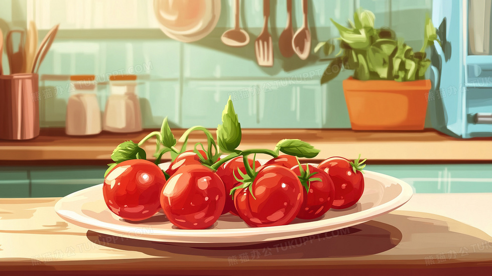 本作品内容为桌子上盘子里新鲜的圣女果插画, 格式为 jpg, 大小2 MB, 图片尺寸为2912 x 1632, 源文件无水印, 欢迎使用熊猫办公。 如认为平台内容涉嫌侵权,可通过邮件:tousu@tukuppt.com提出书面通知,我们将及时处理。
