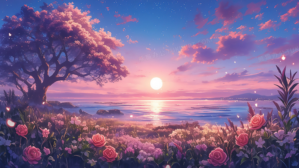 本作品内容为唯美梦幻海边玫瑰花风景自然插画, 格式为 jpg, 大小4 MB, 图片尺寸为2912 x 1632, 源文件无水印, 欢迎使用熊猫办公。 如认为平台内容涉嫌侵权,可通过邮件:tousu@tukuppt.com提出书面通知,我们将及时处理。