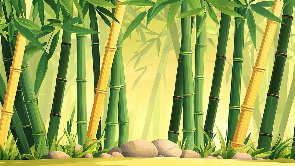 首页 > 插画 > 科技艺术 > 卡通漫画 > 唯美春天翠绿竹林风景插画
