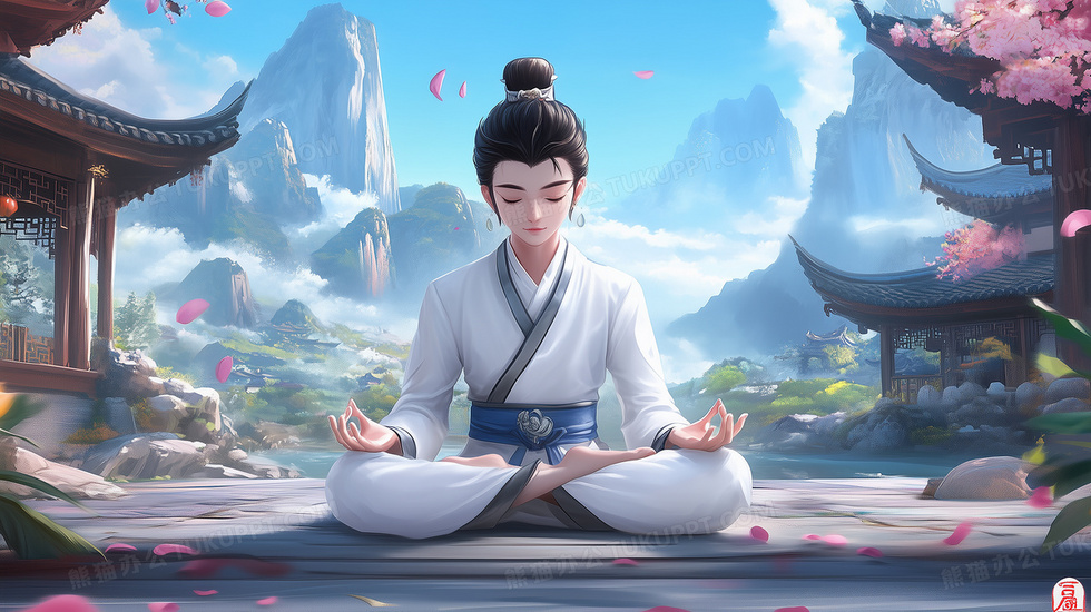 本作品内容为穿着中式服装的古代大侠闭目打坐插画, 格式为 jpg, 大小9 MB, 图片尺寸为2912 x 1632, 源文件无水印, 欢迎使用熊猫办公。 如认为平台内容涉嫌侵权,可通过邮件:tousu@tukuppt.com提出书面通知,我们将及时处理。