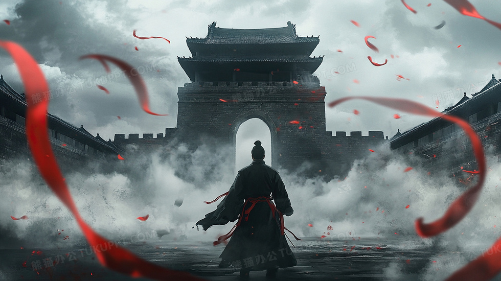 本作品内容为中国风山水武侠侠士城门插画, 格式为 jpg, 大小3 MB, 图片尺寸为2912 x 1632, 源文件无水印, 欢迎使用熊猫办公。 如认为平台内容涉嫌侵权,可通过邮件:tousu@tukuppt.com提出书面通知,我们将及时处理。