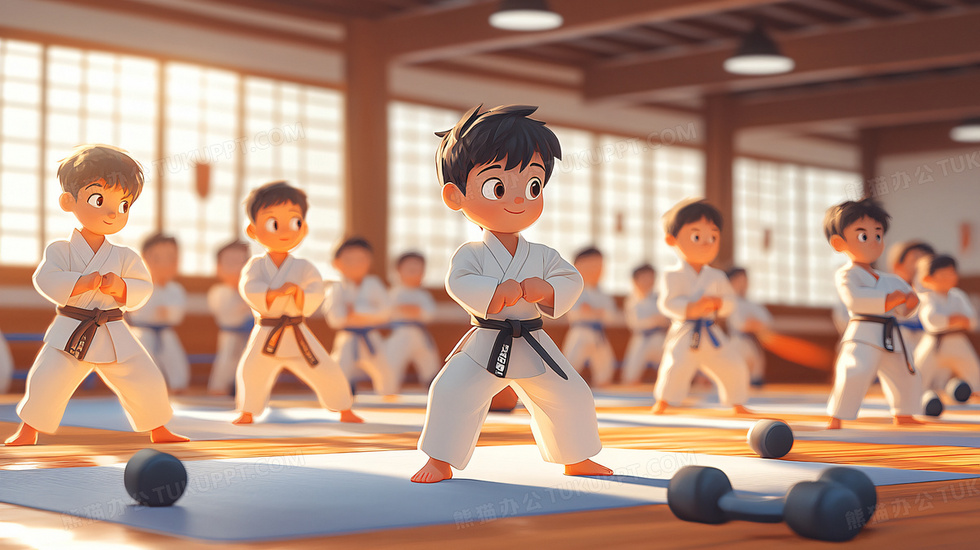 本作品内容为跆拳道馆练习跆拳道的学生插画, 格式为 jpg, 大小5 MB, 图片尺寸为2912 x 1632, 源文件无水印, 欢迎使用熊猫办公。 如认为平台内容涉嫌侵权,可通过邮件:tousu@tukuppt.com提出书面通知,我们将及时处理。