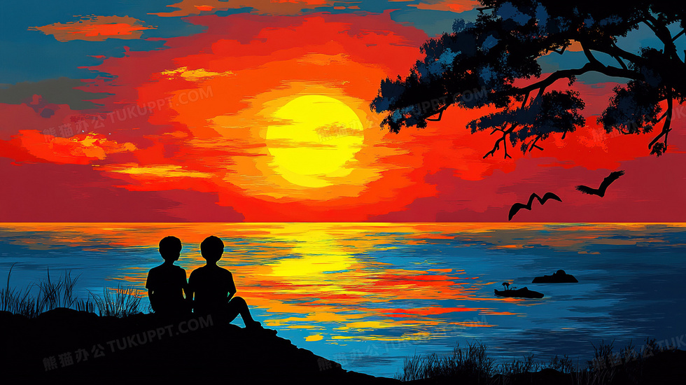 本作品内容为剪影风户外海边坐着的朋友插画, 格式为 jpg, 大小3 MB, 图片尺寸为2912 x 1632, 源文件无水印, 欢迎使用熊猫办公。 如认为平台内容涉嫌侵权,可通过邮件:tousu@tukuppt.com提出书面通知,我们将及时处理。