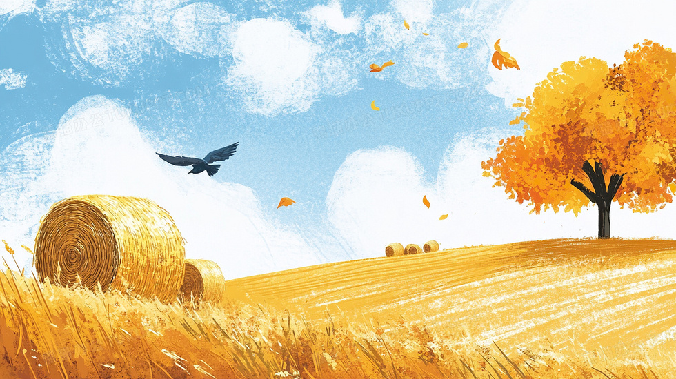 本作品内容为秋天麦田落叶四季风景风光插画, 格式为 jpg, 大小4 MB, 图片尺寸为2912 x 1632, 源文件无水印, 欢迎使用熊猫办公。 如认为平台内容涉嫌侵权,可通过邮件:tousu@tukuppt.com提出书面通知,我们将及时处理。