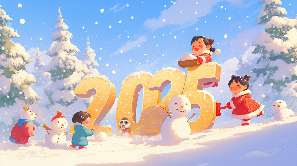 本作品内容为在2025元旦玩雪的孩子插画, 格式为 jpg, 大小3 MB, 图片尺寸为2912 x 1632, 源文件无水印, 欢迎使用熊猫办公。 如认为平台内容涉嫌侵权,可通过邮件:tousu@tukuppt.com提出书面通知,我们将及时处理。