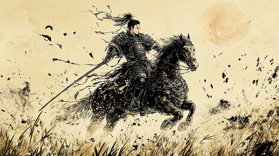 本作品内容为唯美中国风泼墨武侠持剑骑马插画, 格式为 jpg, 大小5 MB, 图片尺寸为2912 x 1632, 源文件无水印, 欢迎使用熊猫办公。 如认为平台内容涉嫌侵权,可通过邮件:tousu@tukuppt.com提出书面通知,我们将及时处理。