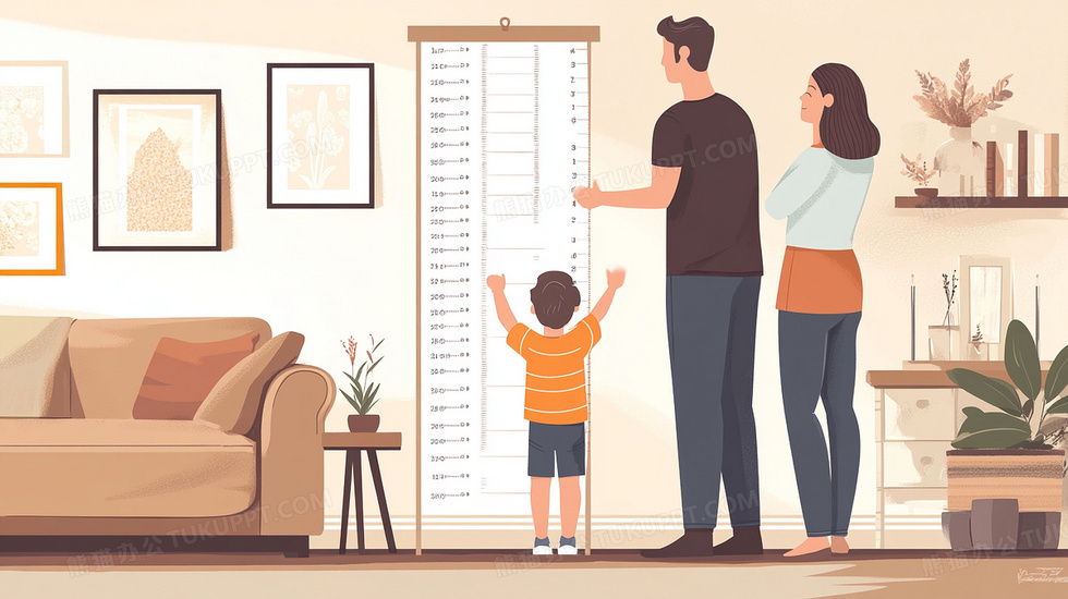 本作品内容为家中父母给孩子测量身高卡通插画, 格式为 jpg, 大小2 MB, 图片尺寸为2912 x 1632, 源文件无水印, 欢迎使用熊猫办公。 如认为平台内容涉嫌侵权,可通过邮件:tousu@tukuppt.com提出书面通知,我们将及时处理。