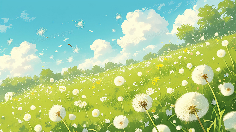 本作品内容为蒲公英随风飘散的草地插画, 格式为 jpg, 大小3 MB, 图片尺寸为2912 x 1632, 源文件无水印, 欢迎使用熊猫办公。 如认为平台内容涉嫌侵权,可通过邮件:tousu@tukuppt.com提出书面通知,我们将及时处理。