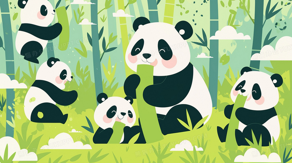 首页 > 插画 > 科技艺术 > 矢量扁平 > 绿色竹林卡通熊猫插画