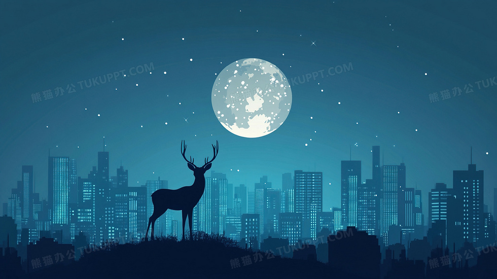 本作品内容为麋鹿月亮城市夜晚背景, 格式为 jpg, 大小3 MB, 图片尺寸为2912 x 1632, 作品中背景图片无需修改, 源文件无水印,可以直接使用, 欢迎使用熊猫办公。 如认为平台内容涉嫌侵权,可通过邮件:tousu@tukuppt.com提出书面通知,我们将及时处理。
