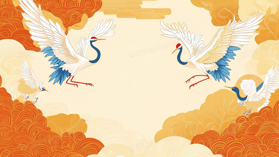本作品内容为中国风仙鹤边框背景, 格式为 jpg, 大小3 MB, 图片尺寸为2912 x 1632, 作品中背景图片无需修改, 源文件无水印,可以直接使用, 欢迎使用熊猫办公。 如认为平台内容涉嫌侵权,可通过邮件:tousu@tukuppt.com提出书面通知,我们将及时处理。