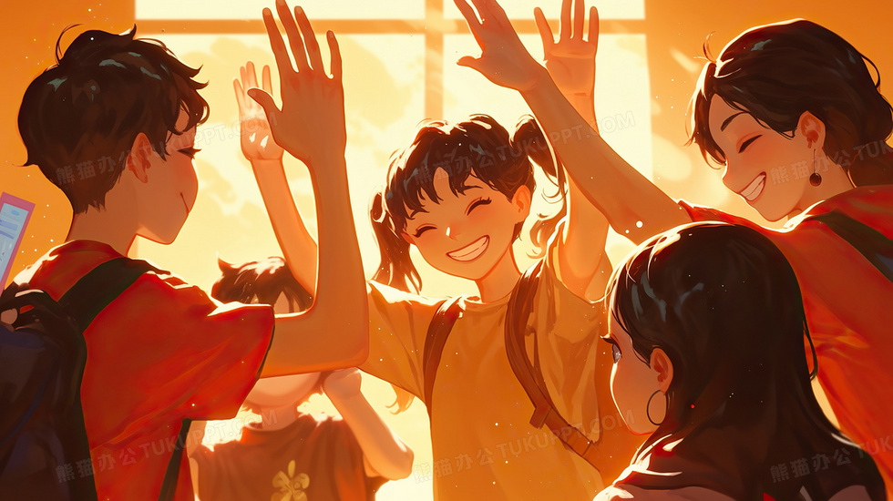 本作品内容为学生击掌手势场景插画, 格式为 jpg, 大小3 MB, 图片尺寸为2912 x 1632, 源文件无水印, 欢迎使用熊猫办公。 如认为平台内容涉嫌侵权,可通过邮件:tousu@tukuppt.com提出书面通知,我们将及时处理。