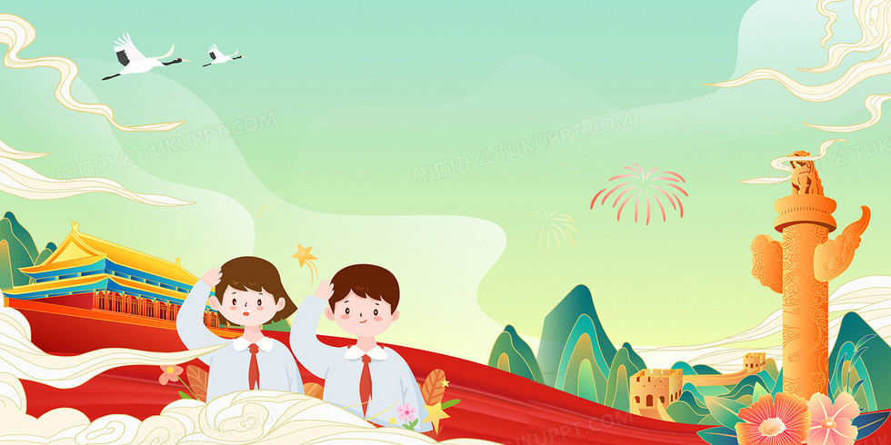 本作品内容为国潮风少年先锋队员敬礼党政背景, 格式为 psd, 大小53 MB, 图片尺寸为4724 x 2362, 作品中背景图片无需修改, 源文件无水印,可以直接使用, 欢迎使用熊猫办公。 如认为平台内容涉嫌侵权,可通过邮件:tousu@tukuppt.com提出书面通知,我们将及时处理。