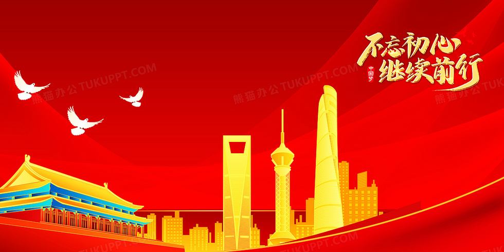 本作品内容为红色党建风不忘初心继续前行插画背景, 格式为 psd, 大小52 MB, 图片尺寸为7087 x 3543, 作品中背景图片无需修改, 源文件无水印,可以直接使用, 欢迎使用熊猫办公。 如认为平台内容涉嫌侵权,可通过邮件:tousu@tukuppt.com提出书面通知,我们将及时处理。