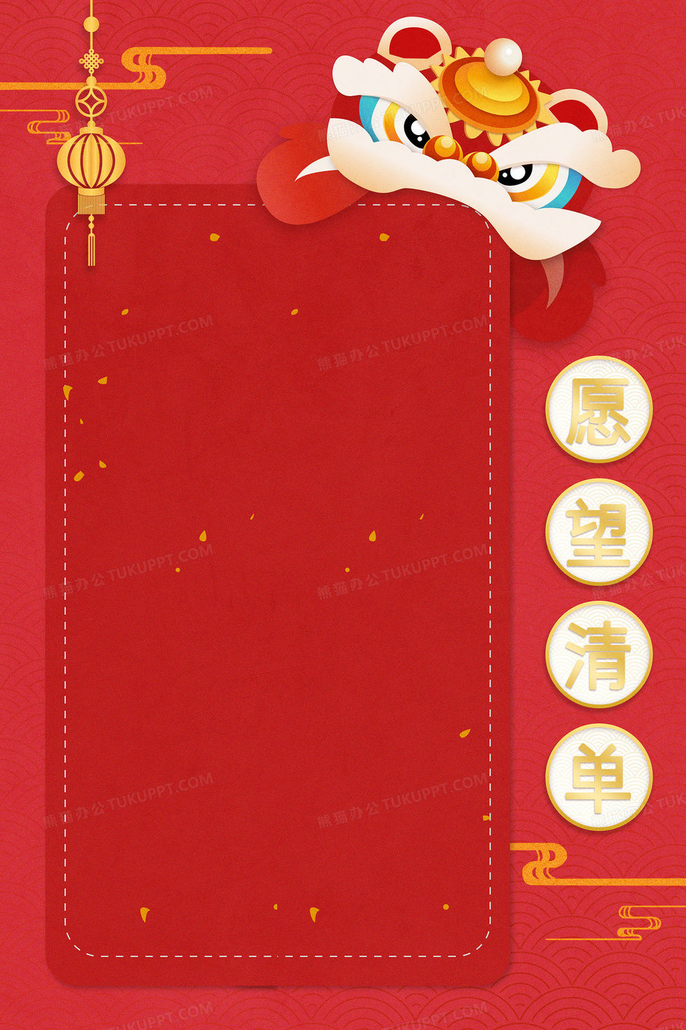 本作品内容为红色喜庆风新年心愿计划背景, 格式为 psd, 大小190 MB, 图片尺寸为3543 x 5315, 作品中背景图片无需修改, 源文件无水印,可以直接使用, 欢迎使用熊猫办公。 如认为平台内容涉嫌侵权,可通过邮件:tousu@tukuppt.com提出书面通知,我们将及时处理。
