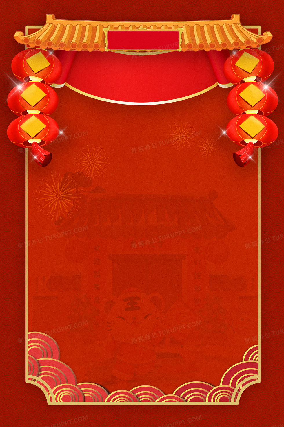 本作品内容为红色喜庆虎年门头边框背景, 格式为 psd, 大小177 MB, 图片尺寸为3543 x 5315, 作品中背景图片无需修改, 源文件无水印,可以直接使用, 欢迎使用熊猫办公。 如认为平台内容涉嫌侵权,可通过邮件:tousu@tukuppt.com提出书面通知,我们将及时处理。