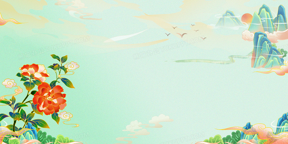本作品内容为国潮山茶花背景, 格式为 psd, 大小79 MB, 图片尺寸为4724 x 2362, 作品中背景图片无需修改, 源文件无水印,可以直接使用, 欢迎使用熊猫办公。 如认为平台内容涉嫌侵权,可通过邮件:tousu@tukuppt.com提出书面通知,我们将及时处理。